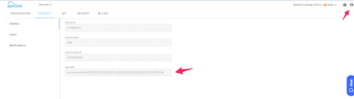 2. Copy Spot Role ARN. In the Spot console, click the user icon on the top right corner).